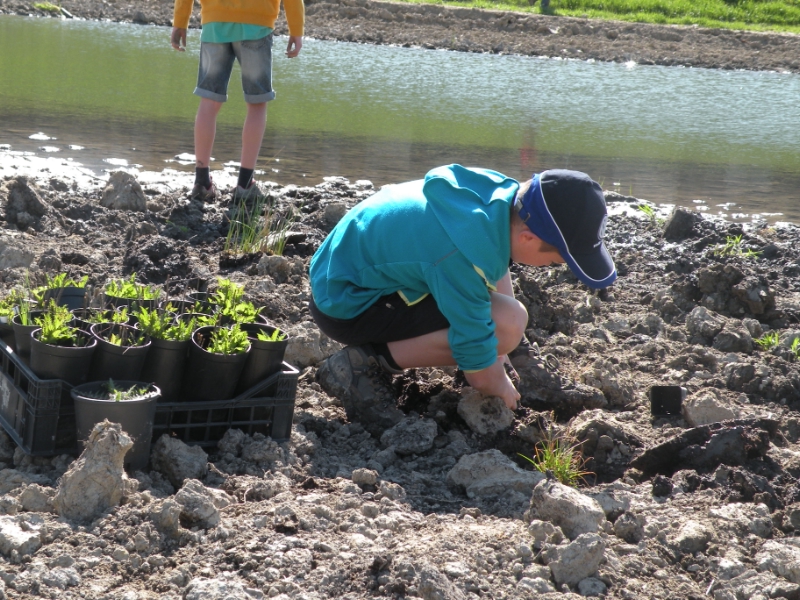 Bei den Pflanzarbeiten, die kürzlich durchgeführt wurden, erhielten die Förster tatkräftige Unterstützung von den Grundschülern von Kurtatsch und Graun. Gemeinsam setzten sie rund 500 standorttypische einheimische Wasser- und Sumpfgewächse ein, die von einem Pflanzgarten der Autonomen Provinz Trient stammen. Alessandro Cavagna, der Leiter dieses Gartens, hat die Pflanzarbeiten im neuen Biotop betreut. "Nun müssen wir der Natur die Zeit lassen bis sich die Pflanzen durch Ausläufer und Samen vermehren", betont Cavagna. "Es werden sich aber auch von alleine standorttypische Pflanzen ansiedeln", erklärt Maria Luise Kiem, Biologin im Landesamt für Landschaftsökologie. Vorsicht sei laut Kiem angebracht, wenn die Beeren der gepflanzten Sträucher reif werden: "Sie sind eine wichtige Nahrungsquelle für Tiere, aber alle mehr oder weniger giftig für Menschen."