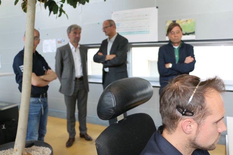 Wie funktioniert die Leitstelle jenseits des Brenners? Geschäftsführer Noggler (Mitte) mit Landesrätin Stocker und Landesrat Schuler.