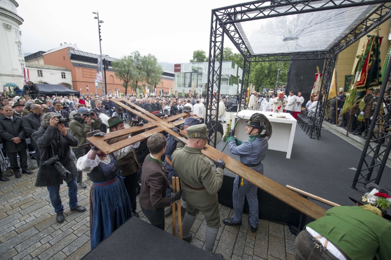 Auf den Einzug der Traditionsverbände aus den drei Landesteilen am Vorplatz des Tiroler Landestheaters folgte der gemeinsame Gottesdienst, den die Diözesanbischöfe Manfred Scheuer, Ivo Muser und Generalvikar Michele Tommasi zelebrierten. Nach dem Gottesdienst gedachte Landeshauptmann Platter der Gefallenen.