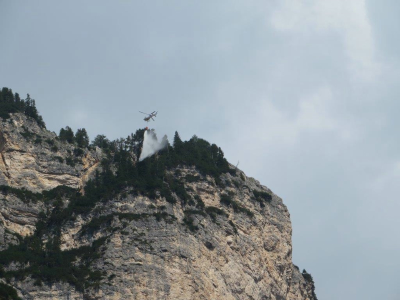 Gegen 14.00 Uhr ertönte heute (20. Juli) in Pederü in der Gemeinde Enneberg die Sirene: Latschenfelder an den Hängen des Rautals Richtung Sennes stehen in Brand, Männer der Forstbehörde und der Freiwilligen Feuerwehr und seit kurzem auch ein Löschhubschrauber sind zur Brandbekämpfung im Einsatz.