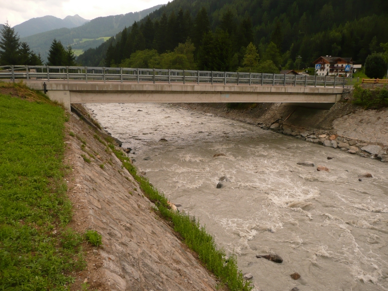 "Durch die Vergrößerung des Abflussquerschnittes soll im Dorfbereich das Risiko einer Überschwemmung und jenes einer Verklausung der Brücke durch Schwemmholz verringert werden", erklärt Alexander Pramstraller, Direktor des Landesamtes für Wildbach- und Lawinenverbauung Nord.