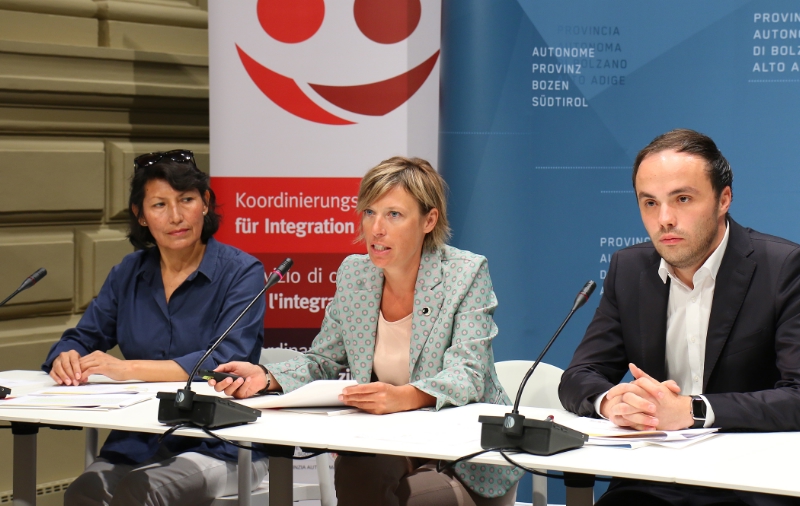 Landesrat Achammer und Ressortdirektorin Nicolussi-Leck gingen abschließend noch auf die Arbeit der Koordinierungsstelle für Integration des Landes ein. Diese ist seit 2014 beim Ressort für Bildungsförderung, Deutsche Kultur und Integration angesiedelt und deckt die vier Bereiche Beratung, Sensibilisierung, Netzwerkarbeit und Forschung ab. „Durch die Arbeit der Koordinierungsstelle sollen beispielsweise bereits funktionierende Integration anhand von Good-Practice-Beispielen sichtbar gemacht und die Wertehaltung zur Inklusion entwickelt werden“, erläutete Ressortdirektorin Vera Nicolussi-Leck. Daneben stehen auch Tagungen zu Schwerpunktthemen oder die Erarbeitung eines Beitragssystems für Gemeinden und Bezirksgemeinschaften auf dem Programm. Bei ihrer Tätigkeit arbeitet die Koordinierungsstelle eng mit den Gemeinden zusammen und bietet etwa auch Qualifizierungsseminare für Gemeindereferenten an. Aber auch die Erforschung des Einwanderungs- und Integrationsprozesses in Südtirol zählt zu den Tätigkeitsbereichen der Koordinierungsstelle.