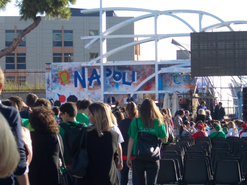 Der Ort der Feier hatte auch symbolischen Charakter: In einem typischen Vorort von Neapel, wo die Armut der Bevölkerung manchmal an Straßenbilder der Dritten Welt erinnert, hat die Schule einen besonderen Stellenwert. Sie ist der Ort, an dem alle willkommen sind und an dem alle eine Chance für eine bessere Zukunft bekommen sollen.