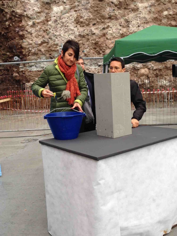 Das Gymnasium "Walther von der Vogelweide" und die Mittelschule "Adalbert Stifter" in Bozen erhalten eine unterirdische Dreifachturnhalle mit Tiefgarage. Bautenlandesrat Christian Tommasini hat heute (16. Oktober) im Rahmen einer Feier den Grundstein gelegt.