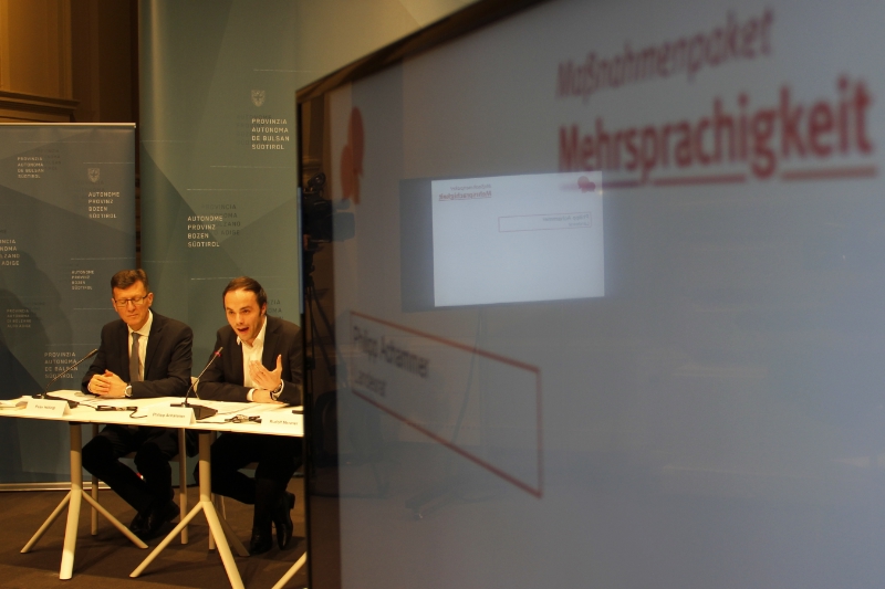 "Südtirol zählt zu den wenigen Regionen Europas, welche die Zielvorgabe des Europäischen Rates vom März 2002 schon heute erfüllt, wonach jedes Kind in der EU von klein auf zwei Sprachen sprechen soll", berichtete Bildungslandesrat Philipp Achammer im Rahmen der heutigen (4. Dezember) Pressekonferenz zur Vorstellung des Maßnahmenpakets zur Förderung der Mehrsprachigkeit.