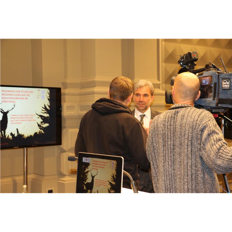 "Unser Auftrag", führte Landesrat Schuler aus, "ist die Erhaltung eines Wildbestandes im Einklang mit den Bedürfnissen der Waldentwicklung und der Land- und Forstwirtschaft". Dabei ist die Jagd der wichtigste Partner, denn nur durch eine geregelte Entnahme kann ein gesundes Gleichgewicht garantiert werden. Um den natürlichen Aufwuchs mit Jungbäumen, also die Verjüngung, zu ermöglichen, ist die Regulierung vor allem des Rotwildes notwendig. Die nun vorliegenden Daten im Vinschgau - innerhalb wie auch außerhalb des Nationalparks - zeigen deutlich, dass die Verbissbelastung durch das Wild für den langfristigen Erhalt der Wälder zu hoch ist.