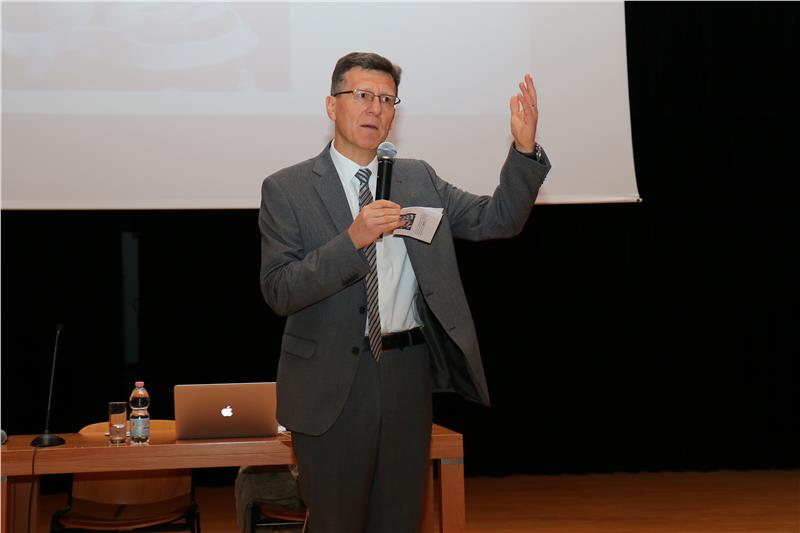 Anschließend hielt Professor Norbert Hungerbühler, der am Mathematikinstitut der Eidgenössischen Technischen Hochschule in Zürich lehrt, ein Referat zum Thema "Skalierbare Themen im Mathematikunterricht". Unter "skalierbar" ist hierbei zu verstehen, dass dieselben Themen entlang der gesamten Schullaufbahn immer wieder aufgegriffen und auf neue Gebiete ausgeweitet werden können. Er erklärte, dass sich manche Themen des Mathematikunterrichts in aufsteigender Komplexität, Anwendbarkeit, Methodenvielfalt und Tiefe vom Kindergarten bis hin zur mathematischen Forschung bearbeiten lassen. Indem man sie in unterschiedlicher Form ständig neu in den Unterricht einfließen lässt, entstehe für die Schülerinnen und Schüler ein kohärentes Bild vom inneren Aufbau und Zusammenhang mathematischer Inhalte, berichtete Professor Hungerbühler und stellte dann einige dieser Themen vor: Dies sind beispielsweise Origami, Kryptographie, Statistik, Spieltheorie, Zerlegungs- und Raumgeometrie oder Beweise. Skalierbare Themen bieten immer wieder Herausforderungen, welche die Weiterentwicklung des Wissens motivieren, erklärte der Professor. Nach dem Referat fand dann eine gemeinsame Diskussionsrunde mit allen Teilnehmern statt.