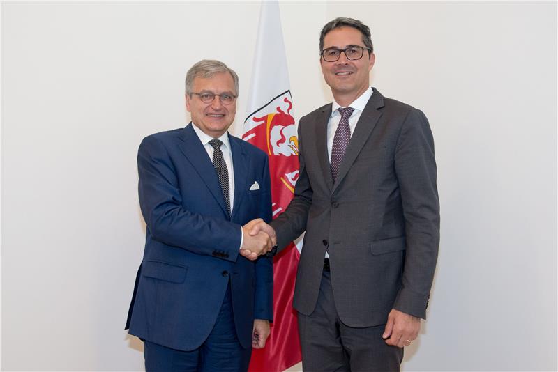 In diesem Zusammenhang analysierten Landeshauptmann Kompatscher und der Wirtschaftdelegierte Berger die Wirtschafts- und Handelsbedingungen. Dabei ging es auch um die Flüchtlingsfrage und den Brenner. „Wir können feststellen, das Italien zu seinen Versprechungen steht“, sagte Landeshauptmann Kompatscher, „wichtig sei nun, dass die auf europäische Ebene gefassten Beschlüsse zur Umverteilung umgesetzt werden.“