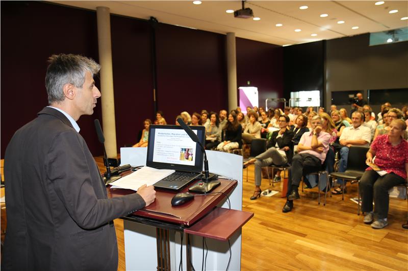 Der italienische Bildungslandesrat und Landeshauptmannstellvertreter Christian Tomasini hob die fundamentale und strategische Bedeutung der Sprachenzentren hervor. "In unseren Schulen ist die kulturelle Vielfalt mittlerweile zur Realität geworden", erklärte Tommasini und warnte vor populistischen Tendenzen, die sich in vielen Ländern Europas bemerkbar machen. Er betonte, dass alle Kinder gleich sind und Identität nicht etwas Starres oder Unveränderliches sei. "Wir müssen uns dafür einsetzen, eine inklusive und offene Gesellschaft aufzubauen und Perspektiven zu schaffen“", forderte der Landesrat.