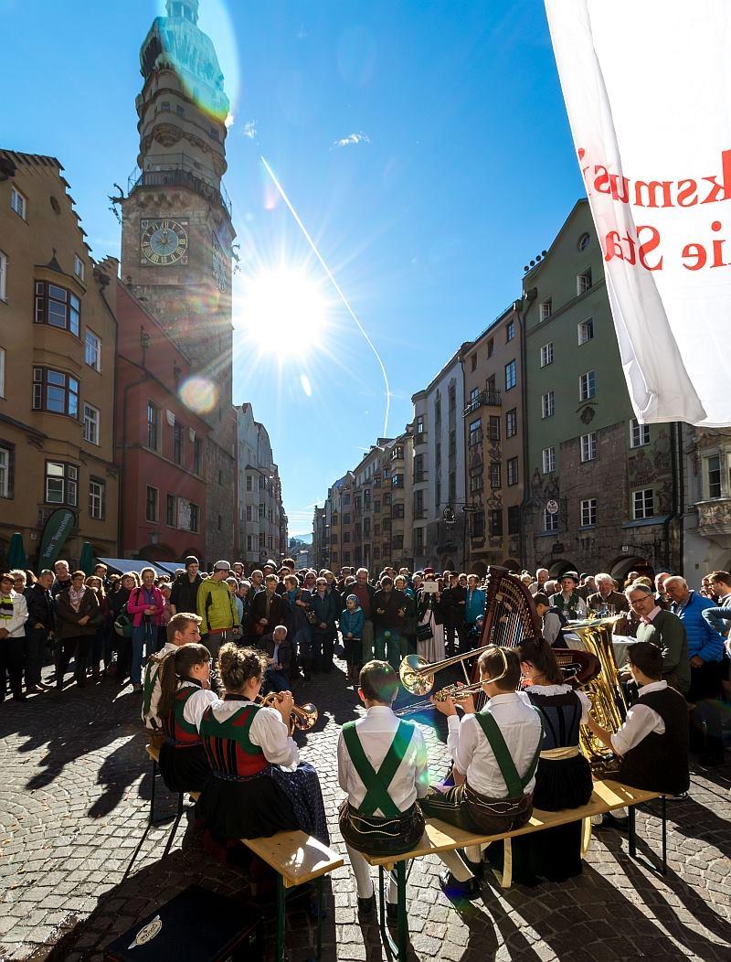 „Aufg’horcht!“ hieß ein weiterer Programmpunkt der Festivals. Auf verschiedenen Plätzen der Innsbrucker Innenstadt wurde aufgespielt und gesungen. Passanten – auch solche, die noch keine Berührungspunkte mit der Volksmusik hatten – blieben stehen und lauschten den alpenländischen Melodien. So gelang es den Organisatoren, Volksmusik, Volksgesang und Volkstanz wieder in das  Bewusstsein der Allgemeinheit zu bringen.