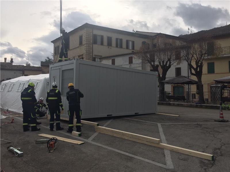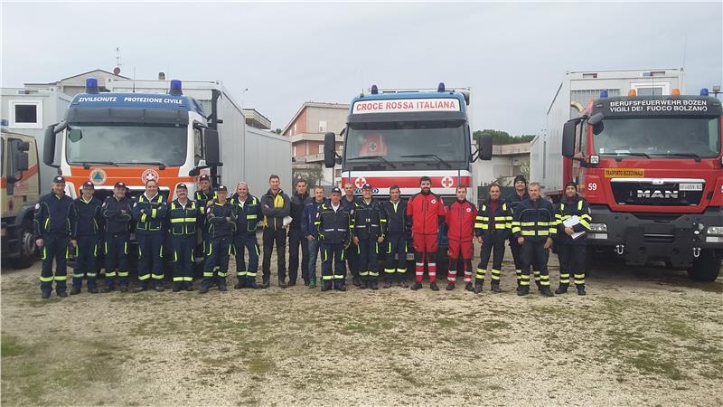 Nach dem starken Erdbeben am 26. Oktober in Mittelitalien war der Südtiroler Bevölkerungsschutz sofort bereit, innerhalb von 24 Stunden auf Anfrage von Seiten der Italienischen Zivilschutzbehörde einen Betreuungszug, Erdbewegungsmaschinen oder Drehleitern ins Erdbebengebiet zu entsenden. Der Erkundungstrupp, bestehend aus Mitarbeitern der Agentur für Bevölkerungsschutz und des Weißen Kreuzes, brach bereits am Montag, 31. Oktober, Richtung Süden auf, um Informationen zur allgemeinen Lage im Krisengebiet einzuholen und einen Südtiroler Einsatz im Erdbebengebiet vorzubereiten. Bei einem Treffen mit der Einsatzzentrale SOI (Sala operativa integrata) in Macerata wurde mitgeteilt, welche Gemeinden mit Bürocontainern beliefert werden sollten. Zunächst musste überprüft werden, wo die Container aufgestellt werden konnten. "Dank der guten Vorarbeit durch den Erkundungstrupp hat der Einsatz sehr gut geklappt", betont Direktor Pollinger.