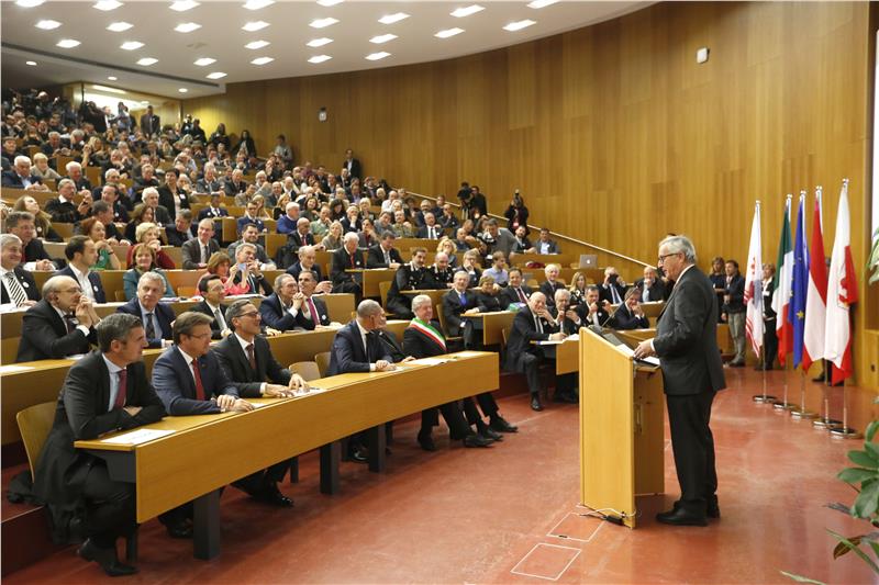Mit einem Plädoyer für ein geeintes Europa, in dem die Mitgliedsländer sich die Souveränität teilen und sich solidarisch zur Seite stehen, sorgte der Präsident der Europäischen Kommission, Jean-Claude Juncker heute Mittag an der Freien Universität Bozen für den Höhepunkt der Konferenz zu „Autonomie und Föderalismus in Europa“. „Europa ist der Dialog zwischen Souveränität und Solidarität“,  erklärte Juncker wörtlich. Die Europäische Kommission sei zu oft der Prügelknabe und werde für alles in die Verantwortung genommen, beklagte Juncker. Wenn etwas gut funktioniere, so sei es das Verdienst der einzelnen Staaten, wenn etwas schlecht funktioniere, liege die Schuld bei der Kommission. „Man kann aber nicht beim Nehmen Vollzeiteuropäer und beim Geben ein Teilzeit-Europäer sein“, so Juncker.