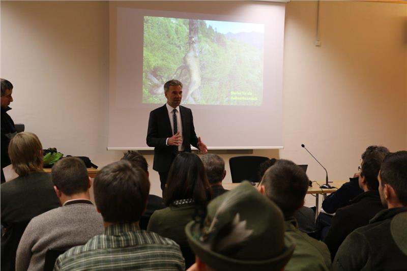 "Die Jagd gehört zur Geschichte der Menschheit", führte Landesrat Arnold Schuler aus. Von der Beschaffung von Fleisch und Pelz in der Steinzeit bis zur heutigen Regulierung der Wildbestände in unserer Kulturlandschaft hat die Jagd ihre Daseinsberechtigung beibehalten. "Der Jäger", hob Abteilungsdirektor Paul Profanter hervor, "sorgt sich um das Wild auch im Interesse der Allgemeinheit". Die Zusammenarbeit zwischen Grundbesitzern, Jägerschaft und Behörde sei notwendig, führte er aus; es brauche Bewirtschaftung und Pflege, Wald- und Almbereich seien so zu behandeln, dass die Ansprüche der Natur wie auch des Wirtschafts- und Siedlungsraum des Menschen erfüllt werden.
