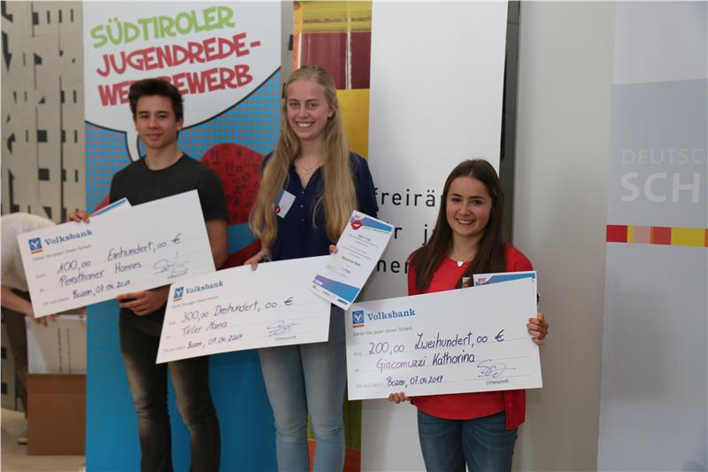 Alle Gewinnerinnen und Gewinner konnten sich über einen Preis von 300 Euro freuen. Die Zweitplatzierten erhielten 200 Euro, die Drittplatzierten 100 Euro. Die Besten dürfen Südtirol zudem bei den Bundesredewettbewerben in Österreich vertreten.