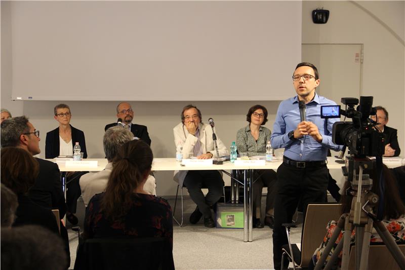 Neben dem Vorstandmitglied des ANPI, Antonio Testini, der den Abend moderierte, sprachen über ihre Erinnerungen an die Zeit der Judenverfolgung: Franca Avataneo, Enkelin des Mantovaner Unternehmers Aldo Castelletti, der von 1933 bis 1939 in Bozen lebte, 1943 in Fondo am Nonsberg festgenommen und über das Meraner Gefängnis ins Lager Reichenau bei Innsbruck deportiert wurde; Elieser und Tamara Kienwald, Enkel des jüdischen Schneiders Oskar Kienwald aus Galizien, der Modesalons in Bozen und Meran führte und dessen Familie den Nazis durch eine abenteuerliche Überquerung der Front entkam; Massimo Gronich, Urenkel des nach Meran gezogenen Chemikers Wolfgang Gronich aus der Bukowina, der ein Schüler von Robert Koch war. Die Autoren Sabine Mayr und Joachim Innerhofer erzählten über ihre Recherchearbeit, über die sie auch in Kontakt mit vielen anderen Personen und ihren Schicksalen kamen. Etliche davon waren zur gestrigen Begegnung angereist, auch wenn sie selbst nicht Zeugnis ablegten.