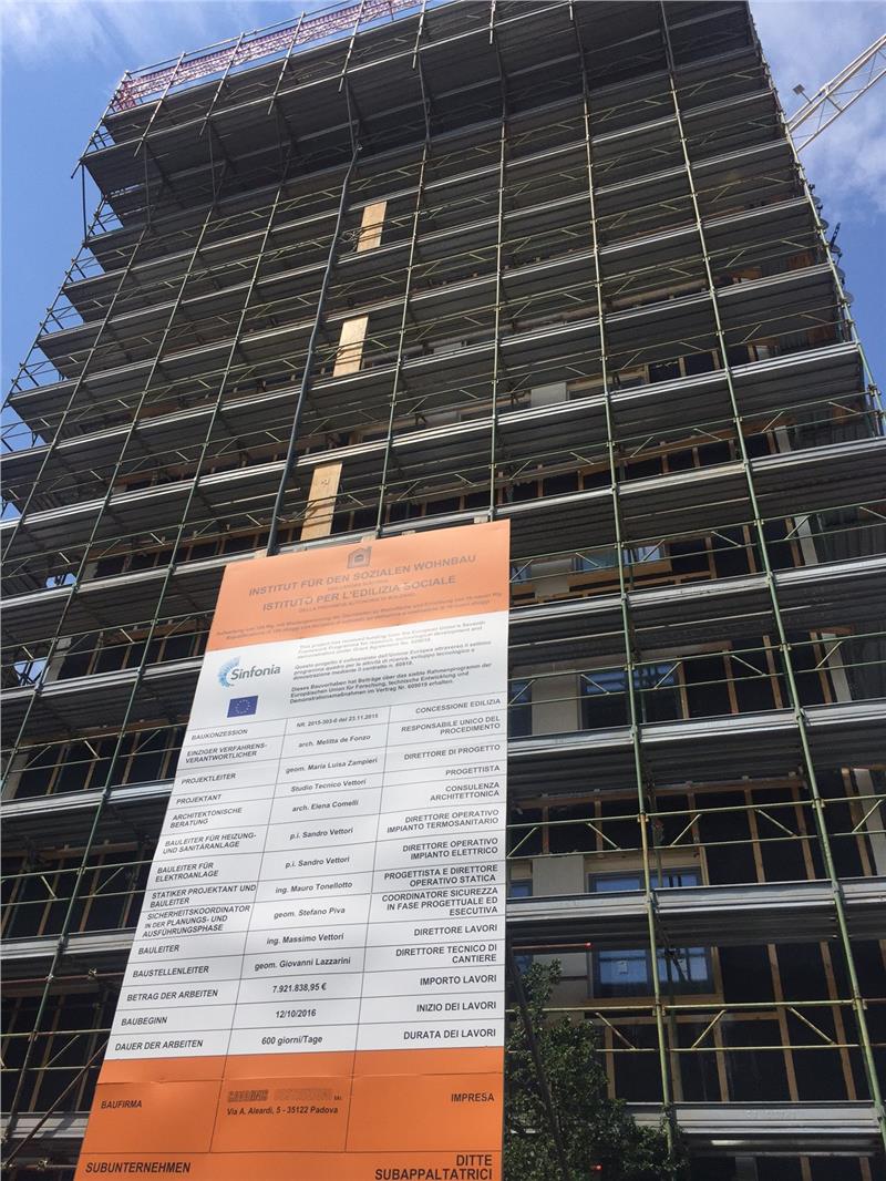 Bautenlandesrat Christian Tommasini wurde am 13. Juni mit Ressortdirektor Paolo Montagner vom Baustellen-Team durch die Baustelle geführt, begleitet von Wohnbauinstitutspräsident Heiner Schweigkofler und seinem Stellvertreter Primo Schönsberg, WoBI-Direktor Wilhelm Palfrader und Verwaltungsratsmitglied Manuela Paulmichl, Ingenieur Gianfranco Minotti und Architektin Melitta de Fonzo.