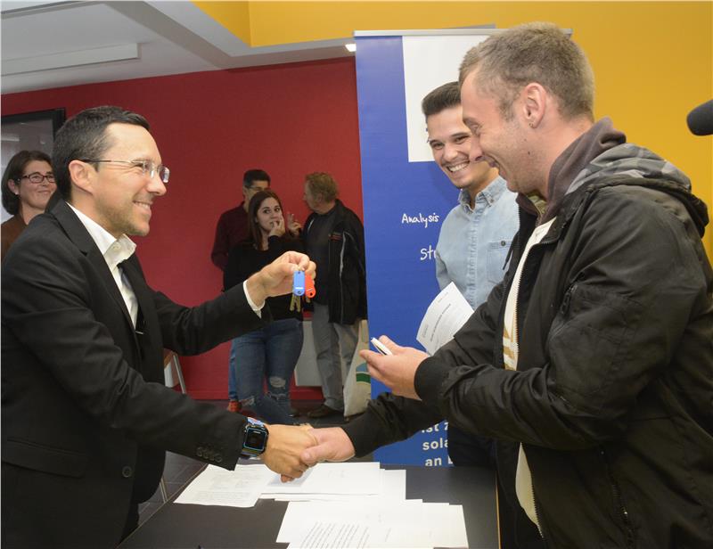 Startschuss für Cohousing in Rosenbach: Landesrat Tommasini bei der Schlüsselübergabe an 24 Jugendliche - Foto: LPA/fgo