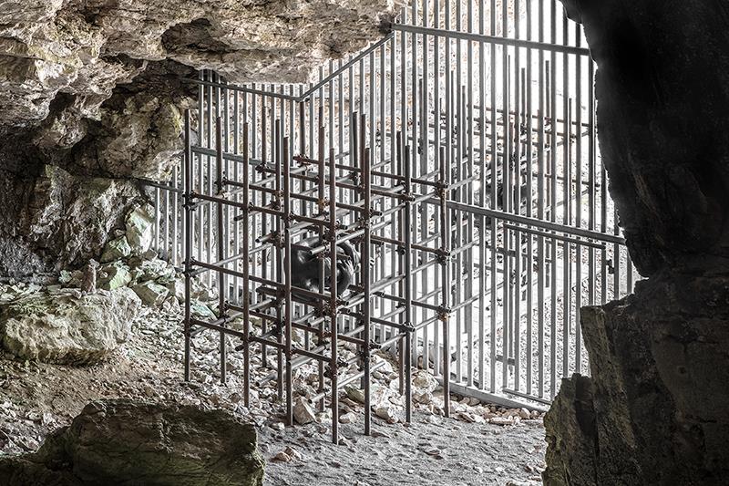 Die komplexe Beziehung zwischen Natur und Mensch ist das Thema der Installation "Integra" des Gadertaler Künstlers Lois Anvidalfarei. Sie befindet sich seit vergangenem Juni auf 2750 Metern Meereshöhe bei der Conturineshöhle im Naturpark Fanes Sennes Prags. Dort, wo vor genau 30 Jahren Reste des Höhlenbären Ursus ladinicus gefunden wurden.