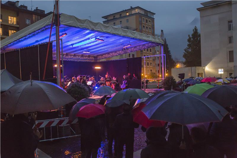 Nach der Einrichtung des Museums am Siegesdenkmal sei mit der Lichtinstallation am monumentalen Mussolini-Relief des Südtiroler Bildhauers Hans Piffrader ein weiterer Meilenstein für eine gemeinsame und verbindende Aufarbeitung der Geschichte Südtirols gesetzt worden. "Das Relief ist damit von einem faschistischen Denkmal zu einem Mahnmal geworden", betonte Landeshauptmann Kompatscher, "das an die Folgen bestimmter Ideologien erinnert und die Werte der Menschlichkeit, der Freiheit und der Demokratie hochhält". Die Erinnerungsfeier am heutigen Abend habe den Anwesenden zudem die Entwicklung vor Augen geführt, die sich in diesem Land vollzogen habe.