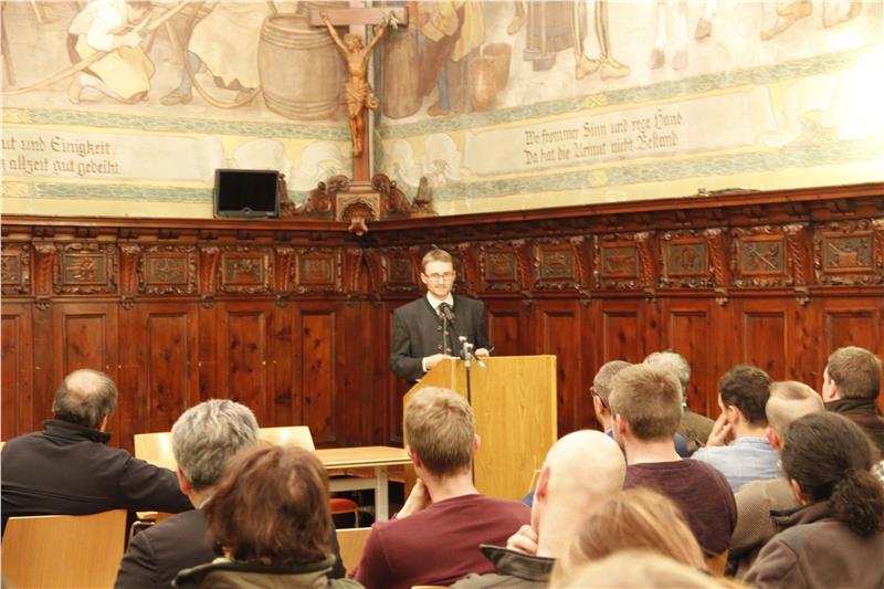 Hat die Jagd eine Zukunft? Diese Frage stellte Benedikt Terzer, Direktionsassistent des Südtiroler Jagdverbandes. Allgemein, habe er beobachtet, sinke die Akzeptanz gegenüber Jägern und auch die Zahl etwa der Jäger in Italien. Südtirol bilde dabei eine Ausnahme, da sich die Zahl der Jägerinnen und Jäger über Jahre hinweg bei 6000 hält. Selbstreflexion sei für Jägerinnen und Jäger wichtig, unterstrich er: Heute mehr denn je sei es nötig, das Handwerk der Jagd zu erklären. Die Jagd sei ein Handwerk, stellte er den Bezug zum Josefssal im Kolpinghaus als Austragungsort der Feier hin: Auf einer Skulptur werden Redlichkeit, Herz, Frohsinn und Fleiß angemahnt - diese Haltung gab er den Jungjägerinnen und Jungjägern mit auf ihren Weg.