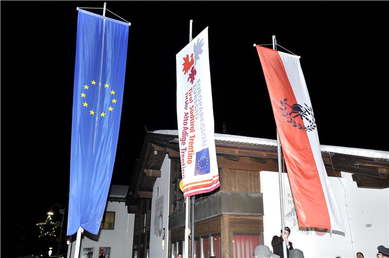 Bei der Eröffnungsfeier des ersten Euregio-Wintersporttages unter der Schirmherrschaft der Europaregion der Freiwilligen Feuerwehren aus Südtirol, Tirol und Trentino gestern (18. Jänner) in Seis am Schlern wurde nach dem Einzug in das Kulturhaus auch die Euregio-Fahne gehisst.