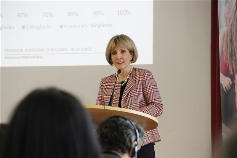 Die Familie habe noch nicht den Stellenwert, den sie verdient, stellte eingangs Familienlandesrätin Waltraud Deeg fest. Gerade in Zeiten sinkender Geburtenraten und der Zunahme der Einpersonenhaushalt brauche es mutige, vor allem antizyklische Familienpolitik, um die Rahmenbedingungen zu schaffen. Südtirol liegt mit einer durchschnittlichen Kinderzahl von 1,7 pro Frau, vor allem im Vergleich mit dem restlichen Italien (1,34 Kind/Frau) gut da. Es seien jedoch viele, gut abgestimmte Maßnahmen auf allen Ebenen nötig, um Familien konkret begleiten zu können. "Familienpolitik muss vorausschauend sein, um mit Maßnahmen rechtzeitig Antworten geben zu können. Es geht darum, durch gute Rahmenbedingungen Lust auf Familie, auf Kinder zu machen", sagte Deeg.