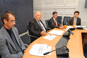 Il presidente della Provincia, Luis Durnwalder, assieme all'assessore provinciale alle Politiche sociali, Richard Theiner, ha presentato questa mattina a Palazzo Widmann lo studio effettuato dall'ASTAT sul tema "Povertà e deprivazione finanziaria in Alto Adige 2008-2009".