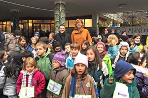 Dopo una sfilata attraverso il quartiere ed il saluto delle autorità presenti alla cerimonia gli alunni hanno eseguito alcuni canti natalizi nel cortile dell’istituto Il vicepresidente Tommasini ha sottolineato nel corso della cerimonia il fatto che la scuola “Chini” è un ottimo istituto, innovativo e creativo, ma la specificità di questo istituto è il fatto che la struttura ospita sia sezioni di lingua italiana che di lingua tedesca.