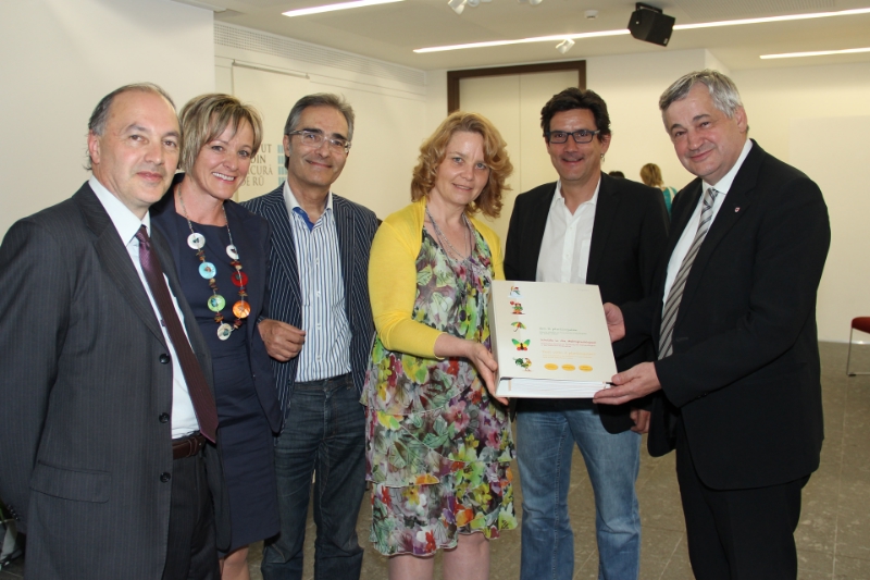 Hanno preso parte alla presentazione del materiale didattico, oltre all'assessore, l'intendente scolastico Roland Verra, la direttrice dell'asilo, Hannelore Insam, il linguista Theodor Rifesser, l'ispettrice Edith Ploner,ed il professor Rico Cathomas, l'assessore Mussner.