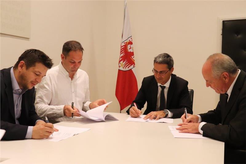 Un fondo speciale per la manutenzione dei sentieri percorsi dalle mountain-bike su superfici di proprietà privata sulle montagne altoatesine ha visto la luce oggi (2 agosto) grazie alla firma dell’accordo fra l’Associazione provinciale delle organizzazioni turistiche, il Bauernbund e l’associazione degli esercenti funiviari dell’Alto Adige. La sottoscrizione dell'intesa ha avuto luogo a Palazzo Widmann, alla presenza del presidente della Provincia Arno Kompatscher nel ruolo di garante. Il fondo istituito presso il Bauernbund prevede la messa a disposizione di 35.000 euro da parte dei tre enti coinvolti per finanziare un’iniziativa di tutela delle zone agricole ad elevata frequentazione di bikers denominata "Progetti a tutela dell’agricoltura". L’accordo è stato sottoscritto dal presidente e dal direttore dell’associazione delle organizzazioni turistiche, Ambros Hofer e Hubert Unterweger, dall’Obmann del Bauernbund Leo Tiefenthaler e dal presidente dell’Associazione degli esercenti funiviari Helmut Sartori. L’accordo prevede la costituzione di un gruppo di lavoro composto rispettivamente da un rappresentante per ciascuna delle associazioni turistiche e degli esercenti funiviari e da due rappresentanti del Bauernbund. Compito del gruppo di lavoro sarà quello di selezionare i progetti a tutela dell’agricoltura che di volta in volta dovranno essere attuati.