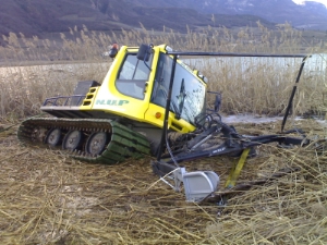 BF BZ - VVF BZAm heutigen Nachmittag wurde im Schilfgürtel des Kalterer Sees die gestern teilweise versunkene Schilfmähmaschine geborgen. In Zusammenarbeit mit den Freiwilligen Feuerwehren von St. Josef am See und Mitterdorf sowie Mitarbeiter des Amtes für Landschaftsökologie, der Gemeinde Kaltern und der Firma NUP aus der Schweiz (mit den Mäharbeiten beauftragte Firma) ist es dieser Berufsfeuerwehr gelungen die Bergung des bei den Mäharbeiten am gestrigen Dienstag teilweise im Wasser eingebrochene Mähmaschine sicher zu bergen. Für die Bergung musste ein eigenes Gerüst vor Ort aufgebaut werden.