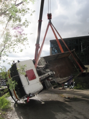 Am heutigen Nachmittag gegen 16:00 Uhr wurde die Kranmannschaft der Berufsfeuerwehr Bozen von der Feuerwehr St.Christina zur Unterstützung angefordert. In St.Christina neben der Talstation der Saslong war ein LKW beim Überqueren einer Holzbrücke in das Bachbett gestürzt. Die Holzbrücke stürzte unter der Last des LKW's ein. Der Fahrer konnte das Fahrerhaus, welches teilweise unter Wasser war, unverletzt verlassen. Beim Einsturz wurde eine unter der Brücke verlaufende Stromleitung und eine Gasleitung beschädigt. Daraufhin kam zu einem Brand, der nach dem Absperren der Gaszufuhr durch die Ortsfeuerwehr gelöscht werden konnte. Nach dem Absichern der Einsatzstelle wurde zuerst der LKW und anschließend die eingestürzten Brückenteile mittels schwerem Kranfahrzeug geborgen. Neben der Freiwilligen Feuerwehr St.Christina, der Berufsfeuerwehr Bozen waren weiters die Carabinieri, ein Techniker der SEL-Gas sowie ein Vertreter der Landesabteilung für Wasserschutzbauten im Einsatz. Die Bergungsarbeiten dauerten ca. 3 Stunden.