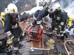 Um 12 Uhr 54 wurde heute für die Berufsfeuerwehr Bozen durch die Landesnotrufzentrale Feueralarm wegen eines Dachstuhlbrandes am Burgerhof in Afing, ausgelöst. Sofort machte sich der Löschzug mit Einsatzleitfahrzeug, Tankwagen und Drehleiter auf den Weg nach Afing wo bereits die Freiwillige Feuerwehren von Afing,Jenesien und Flaas mit den Löscharbeiten beschäftigt waren. Der Brand, welcher vermutlich von einem Kamin ausging, entzündete auch das Isoliermaterial der Dachkonstruktion und griff in der Folge schnell auf das gesamte Dach über. Um effiziente Löscharbeiten durchzuführen mußten große Teile des Daches abgedeckt werden. Gleichzeitig wurden in den darunterliegenden Wohnungen auch alle Möbel und Einrichtungsgegenstände entfernt um den Sachschaden so gering als möglich zu halten. Es kamen keine Personen zu Schaden. Die Löscharbeiten waren um 16 Uhr beendet. Eine Löschmannschaft der Feuerwehr Afing blieb als Brandwache vor Ort.