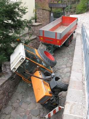 Um 15:27 Uhr des 28. März 2011 rückte eine Mannschaft der Berufsfeuerwehr Bozen für die Bergung eines Traktors aus, der sich in einer misslichen Lage befand. Der Traktor der städtischen Gärtnerei, der einen leeren Anhänger zog, war bei Ankunft der Mannschaft der Berufsfeuerwehr Bozen, seitlich gekippt und zwischen den Grenzmauern des steilen Steinweges verkeilt. Der Fahrer wurde unter Schock aber unverletzt ins Bozner Krankenhaus eingeliefert.
