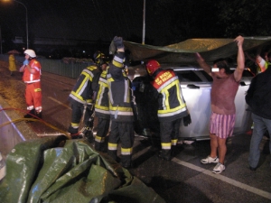 30.07.2012 - Verkehrsunfall während nächtlichem Gewitter auf der Palermobrücke in Bozen