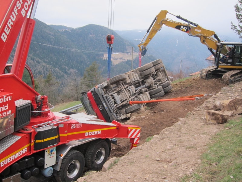 Die Bergungsarbeiten wurden mit dem Kran der Berufsfeuerwehr Bozen und einem Bagger durchgeführt.