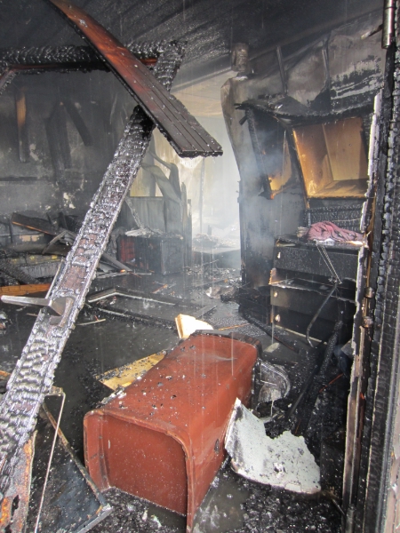 Das Feuer brach in einem kleinen Holzhaus mit angebautem Wohnkontainer aus, das abbrannte.