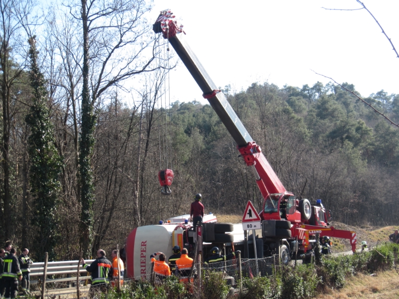 Gegen 05:00 ca. wurde diese Berufsfeuerwehr zu einem LKW Unfall nach Mals gerufen. Ein mit Kartonen beladener Sattelschlepper kippte aus ungeklärter Ursache um und rutschte seitlich gegen einen Baum. Dabei wurde der junge LKW-Fahrer tödlich verletzt. Zunächst wurde der Fahrer geborgen, anschliessend wurde der LKW samt Sattel auf die Räder gestellt und abgeschleppt.