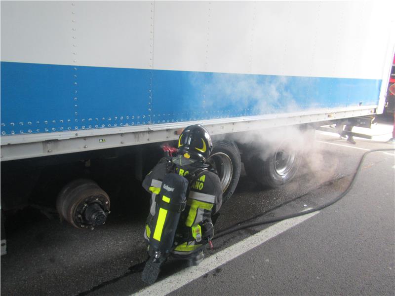 Heute Morgen gegen 08:45 Uhr wurde die Berufsfeuerwehr Bozen zu einem Lkw-Brand auf die Autobahn gerufen. Auf der Nordspur zwischen Bozen-Süd und Bozen-Nord war es zu einem Entstehungsbrand an einem Sattel-Auflieger gekommen. Die angerückte Mannschaft führte die Nachlöscharbeiten durch und kühlte die stark erhitzen Bereiche mit Wasser. Auch das Innere, bzw- die Beladung wurde mittels Wärmebildkamera kontrolliert. Nach diesen erstmaßnahmen wurde das Fahrzeug bis nach Bozen-Nord eskortiert und nochmals kontrolliert. Während des Einsatzes blieb eine Fahrspur für den Verkehr gesperrt. Es bildete sich eine kilometerlanger Stau.