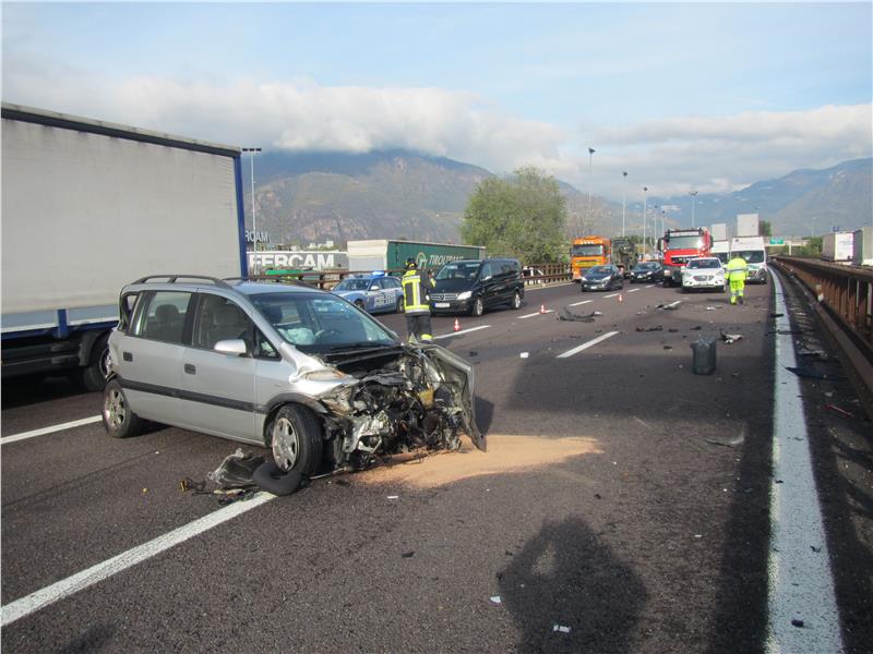 Gegen 13:00 Uhr des 20.11.2019 wurde diese Berufsfeuerwehr auf die Autobahn gerufen nachdem ein Sattelschlepper aus Litauen und ein PKW bei der Einfahrt Bozen Süd in Richtung Süden aneinander geraten waren. Dabei wurden beide Fahrzeuge schwer beschädigt. Durch das Ausweichmanöver des Sattelschlepper verlor dieser die Kontrolle und prallte mit voller Wucht in die Mittelleitplanken. Diese hielten stand und verhinderten dass das Schwerfahrzeug in die Gegenfahrbahn geriet. Durch den Aufprall wurde der Fahrer mittelschwer verletzt, während der Fahrer des Sattelschleppers einen leichten Schock erlitt. Die Aufräumarbeiten gestalteten sich als langwierig und verursachten einen ausgedehnten Rückstau. Im Einsatz standen neben dieser Berufsfeuerwehr, ein Rettungswagen des Weissen Kreuzes, Straßenpolizei und Automeisterei der A22.