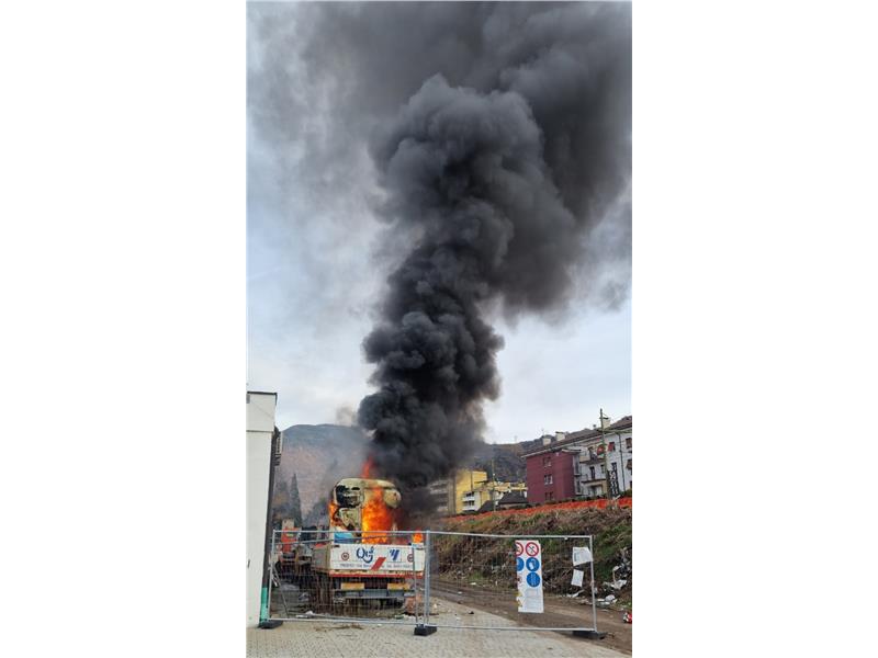Am Vormittag wurde die Berufsfeuerwehr Bozen und die freiwillige Feuerwehr Oberau-Haslach zu einem Brandereignis in die Achille-Grandi-Straße alarmiert. Auf einem abgestellten LKW geriet eine darauf aufgeladene LKW-Kabine samt umliegendem Schrott in Brand. Über der gesamten Industriezone war eine markante Rauchsäule deutlich sichtbar.