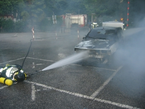 Flüssiggasbetriebenes Fahrzeug in Vollbrand