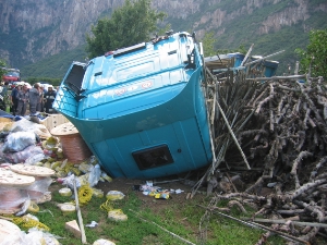 Am Dienstag, den 19.07.2005 um ca. 17.00 Uhr kam ein Sattelauflieger auf der Nordspur der Brennerautobahn auf der Höhe von Pfatten/Leifers (km 92) von der Fahrbahn ab, stürzte über die Böschung und fuhr gegen einen Holzhaufen. Durch diesen Aufprall wurde die Führerkabine vom Fahrzeugrahmen gerissen.