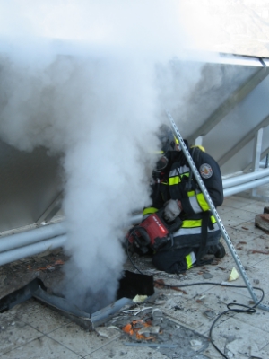 Durch den Einsatz von so genannten „Fog Nails“ und der Wärmebildkamera konnte der Brand nach anstrengenden Stunden unter Kontrolle gebracht werden. Diese Fog Nails werden in einem mit dem Schlagbohrer gebohrtes Loch in der Wand positioniert und über kleine Düsen strömt dann ein gezielter Wasserstrahl in den brennenden Zwischenbereich.