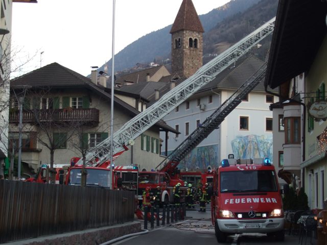 Am Freitag, den 11. Februar 2011 gegen 15.00 Uhr wurde trotz eines Großeinsatzes mehrerer Feuerwehren das Dach eines Wohnhauses im Zentrum von Kardaun durch ein Schadenfeuer zerstört. Ein Passant hatte das Feuer am Dach des Wohnhauses entdeckt und über die Landesnotrufzentrale die Feuerwehren verständigt. Sofort eilten die Freiwillige Feuerwehr Kardaun/Karneid, die Berufsfeuerwehr Bozen und die Freiwilligen Feuerwehren von Oberau/Haslach, Bozen und Gries zum Einsatzort.