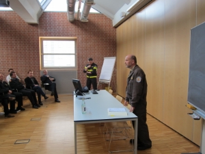 Nach einer Begrüßung durch den Kommandanten der Berufsfeuerwehr Bozen, Dr.-Ing. Ernst Preyer, referierte Franco Magrin, Offizier der Berufsfeuerwehr Belluno über die Organisation der Staatlichen Feuerwehr in Italien, mit besonderem Schwerpunkt auf die Strukturierung und die Abläufe im Falle eines Katastropheneinsatzes. Der Organisatorische Aufbau wurde dann am Beispiel des Erdbebeneinsatzes in l'Aquila den Teilnehmern erklärt.