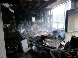 Gleichzeitig mußten die anliegenden Büros und Räumlichkeiten vor einem Übergreifen der Flammen geschützt werden.