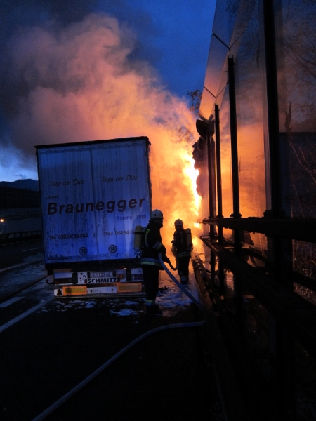 Wegen eines LKW-Brandes auf der Südspur der Brennerautobahn KM 61, wurde die Berufsfeuerwehr Bozen zu einem Einsatz gerufen. Der LKW war voll mit Holzplatten beladen, was den Brand förderte, die Löscharbeiten und das Entladen der verrauchten Holzplatten erschwerte.