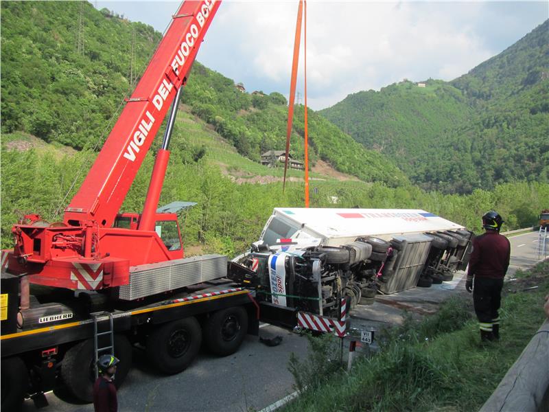 22.04.2016 -Folgebericht zum LKW Unfall auf der Staatstrasse nördlich von Bozen Nord