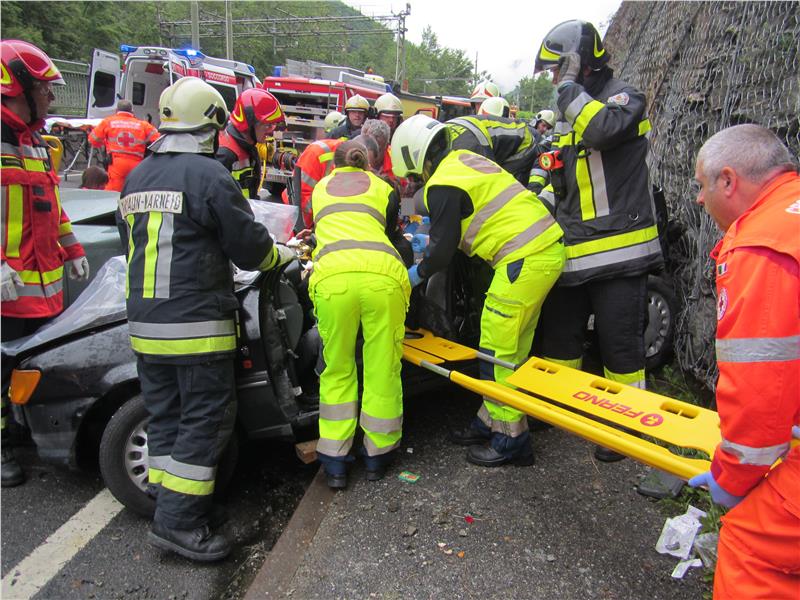 Am 30. Mai 2016 um 7:44 Uhr wurde die Berufsfeuerwehr Bozen zu einem Verkehrsunfall auf der SS12 auf der Höhe von Km 446,300 gerufen. Zwei PKW's prallten in einer Kurve bei Blumau zusammen, dabei blieben die Insassen eines Ford Fiesta im Fahrzeug eingeklemmt.